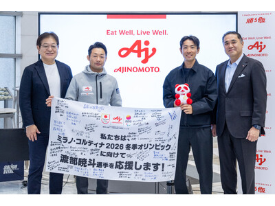 集大成となるミラノ・コルティナ2026に向けて「このまま終わるつもりはない!」と力強いコメント!味の素社員から“横断幕”と”アジパンダ”でエール!