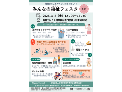 舞鶴市は、令和7年11月8日(土)に舞鶴YMCA国際福祉専門学校にて「みんなの福祉フェスタ2025」を開催します。 福祉を身近に感じ、福祉を支える方々と来場者が理解と交流を深めることを目的とした体験型イベントです。