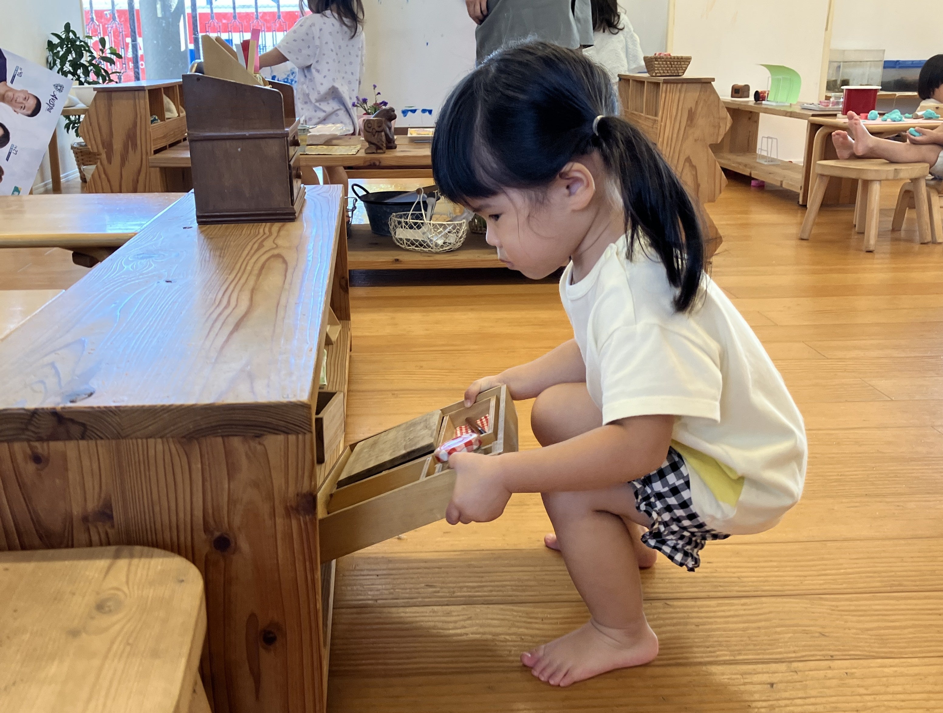 自由選択活動 … 一人ひとりの発達段階に合わせた環境で 今日何をするかは子どもが自分で選び活動します。