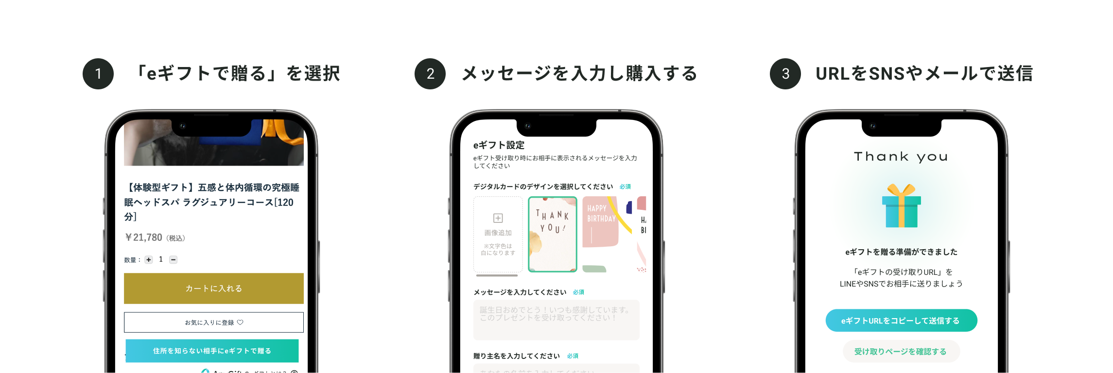 1)商品ページで「eギフトを贈る」を選択するとeギフトをご利用いただけます。