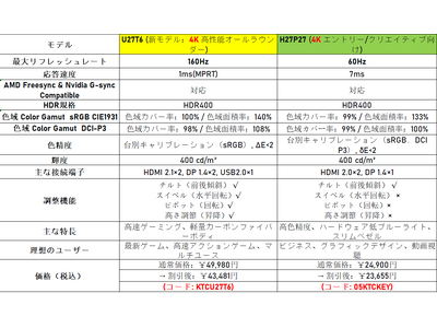 ■ 【比較表で分かる】「U27T6」と「H27P27」、用途に合わせて最適な4Kを選ぼう