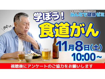 社会福祉法人聖隷福祉事業団 総合病院聖隷浜松病院(静岡県浜松市)は、市民公開講座 第13回みんなで健康ゼミ「学ぼう!食道がん」を開催します。専門の医師が食道がんについてわかりやすく解説します。 本講座は、会場にお越しいただくほか、オンライン(ライブ配信・見逃し配信)でもご覧いただけます。ぜひご参加ください。