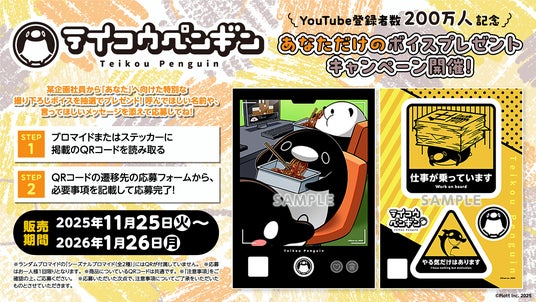 IPコンテンツの企画・制作・ビジネス展開を行う株式会社Plott(本社:東京都千代田区、代表取締役:奥野翔太、以下 「Plott」)は、運営するショートアニメ『テイコウペンギン』のYouTubeチャンネル登録者数200万人達成に向けた「テイコウペンギン200万人特大キャンペーン」が始動することをお知らせいたします。
