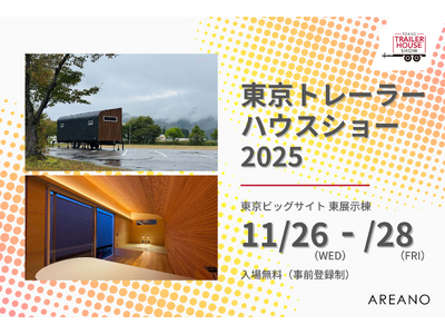 株式会社エリアノ(本社:東京都千代田区、代表取締役:武田晃直、以下エリアノ)は、2025年11月26日(水)~28日(金)に東京ビックサイトにて開催される、日本最大規模のトレーラーハウス専門展示会「東京トレーラーハウスショー」に初めて出展することをお知らせいたします。