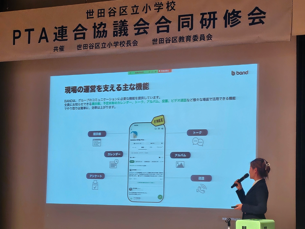 BANDは、「PTA運営をラクに、つながりやすくするDXツール」として登壇し、