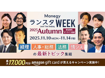 株式会社 MS-Japan(本社:東京都千代田区 代表取締役会長CEO:有本隆浩/以下 MS-Japan 証券コード:6539)が運営する管理部門と士業のためのビジネスメディア「Manegy」は、11月10日より、管理部門向けオンラインイベント『ManegyランスタWEEK-2025 Autumn-』を開催いたします。
