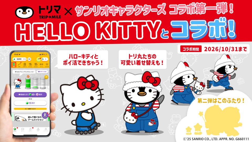 ジオテクノロジーズ株式会社(本社:東京都文京区)は、移動するだけでポイントが貯まるアプリ「トリマ」において、株式会社サンリオ(本社:東京都品川区)のキャラクターとのコラボレーション企画を2025年11月4日より開始します。