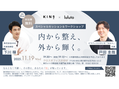 ピラティススタジオ「ルルト」 事業代表 戸田 圭哉のコメント私達はこれまで、一部店舗でKINS様の製品を取り扱う中で、お客様の身体が内側から変わっていくのを目の当たりにしてきました。しかし同時に、『もっと何かできるはずなのに』というもどかしさも感じていました。今回、下川社長と直接対話する機会をいただき、私達が持つ“外側からのアプローチ”こそが、腸内細菌ケアの効果を最大化する最後のワンピースだと確信しました。当日は、その具体的なメソッドについて、初めてお話しします