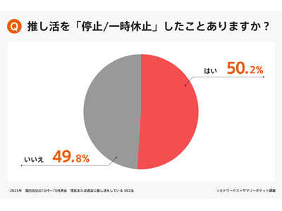 推し活を「停止/一時休止したことがある」と回答した人は全体の50.2%にのぼり、半数が一度は活動から離れた経験を持つことが明らかになりました。推し活は必ずしも継続し続けるものではなく、金銭的負担や情報の多さなど、さまざまな理由から「停止」や「一時休止」が身近な選択肢となっています。
