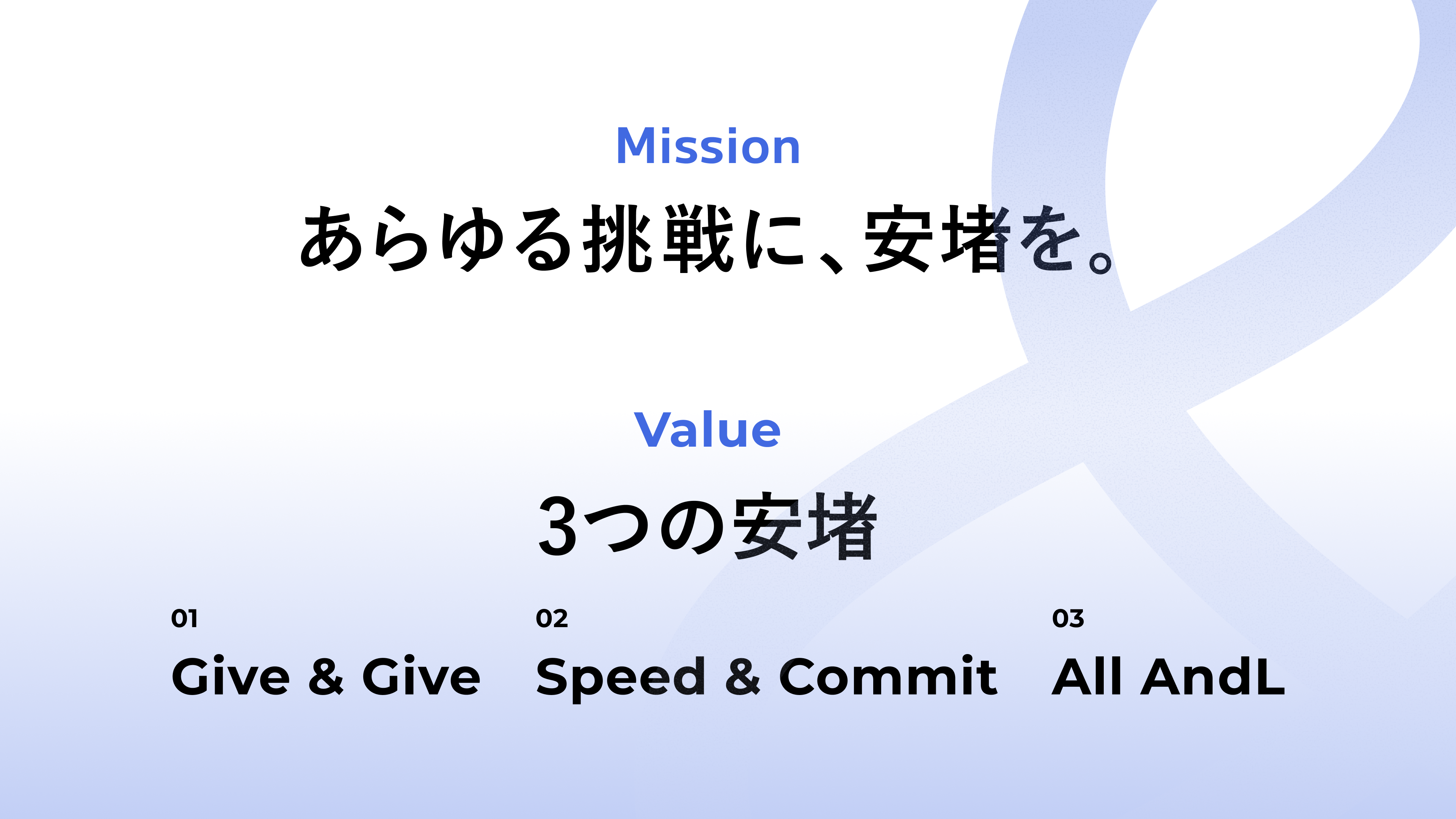 ミッション:「あらゆる挑戦に、安堵を。」
