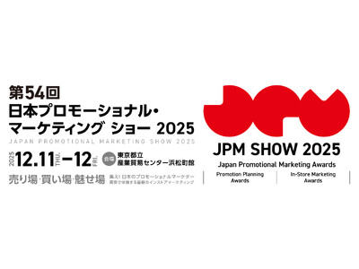 一般社団法人 日本プロモーショナル・マーケティング協会(理事長:沼野 芳樹)は、マーケティングおよびプロモーション業界全体を担う日本最大級のイベント「第54回 日本プロモーショナル・マーケティングショー2025」を、2025年12月11日(木)から12日(金)までの2日間、東京ポートシティ竹芝オフィスタワー内の東京都立産業貿易センター 浜松町館4階にて開催します。