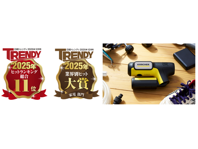 株式会社ケルヒャー ジャパン(本社:神奈川県横浜市、代表取締役社長:柴田 佳代子)は、手のひらサイズのモバイル高圧洗浄機「OC Handy Compact(通称:ハンディエア)」が、日経BP社発行の情報誌『日経トレンディ』が選定する「2025年ヒット商品ベスト30」に11位で選出、家電部門の大賞を受賞したことをお知らせいたします。