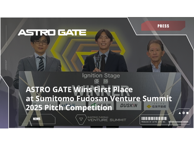 ASTRO GATE株式会社(本社:東京都あきる野市、代表取締役社長:大出大輔、以下「ASTRO GATE」)は、2025年10月29日(水)に開催された「住友不動産ベンチャーサミット2025」IGNITION STAGE PITCH にて、優勝ならびにSBI Investment賞を受賞したことをお知らせいたします。