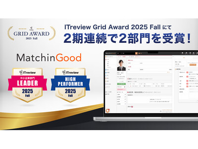 この度、「ITreview Grid Award 2025 Fall」において、2期連続で栄えある賞をいただけたこと、大変光栄に存じます。「MatchinGood」をご利用いただいているお客様、並びにレビューをご投稿くださった皆様に心より感謝申し上げます。