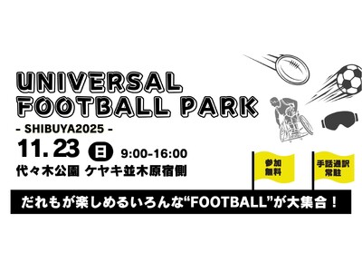 一般社団法人渋谷未来デザイン(代表理事:小泉秀樹、以下渋谷未来デザイン)、FOOTBALL PARK SHIBUYA 2025実行委員会、特定非営利活動法人OneRugbyの3団体は、年齢、性別、運動経験、障がいの有無に関係なく、すべての人が安心して楽しめる“ユニバーサルなフットボール体験”ができるイベント「UNIVERSAL FOOTBALL PARK SHIBUYA」を、11月23日(日)に開催いたします。