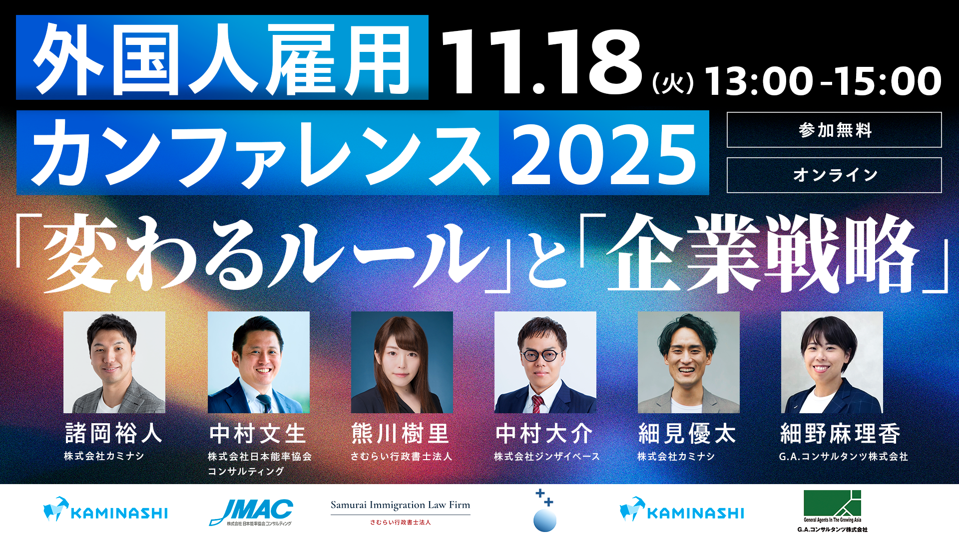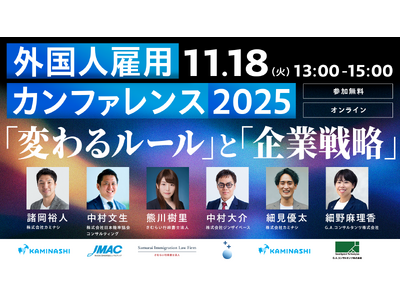 外国人材の紹介・採用コンサルティングを展開する株式会社ジンザイベース(本社:東京都千代田区、代表取締役:中村 大介、以下「ジンザイベース」)は、現場DXプラットフォーム『カミナシ』シリーズを提供する株式会社カミナシ(本社:東京都千代田区、代表取締役:諸岡 裕人、以下「カミナシ」)が2025年11月18日(火)13:00に主催する『外国人雇用カンファレンス2025 「変わるルール」と「企業戦略」』に登壇いたします。(参加費無料・事前登録制)