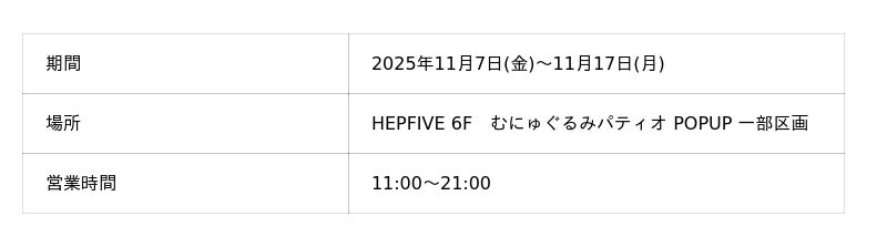 HEPFIVE 6F むにゅぐるみパティオ POPUP一部区画にて、