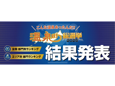 5万人以上の温泉好きの方々が応援投票した結果は、「温泉総選挙2025」サイトにて全国 部門別ランキングとエリア別 部門ランキングを発表しております、是非WEBサイトにてご確認ください。