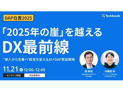 AI型次世代DAP「テックタッチ」を開発・提供し、DAP市場国内シェアNo.1のテックタッチ株式会社は、このたび、経済産業省が提起する「2025年の崖」後の重要課題である「DXの導入から定着・活用へ」をテーマに、2025年11月21日(金)12時から無料オンラインセミナーを開催します。