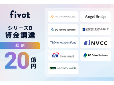 「AI×金融」で未来を切り拓くチャレンジャーバンクをめざすスタートアップ企業、株式会社Fivot(本社:東京都港区、代表取締役:安部匠悟、以下「Fivot」)は、Angel Bridge株式会社、ニッセイ・キャピタル株式会社を共同リード投資家とし、合計9社を引受先とするシリーズBエクイティラウンドにおいて、総額10億円の第三者割当増資および10億円のデットファイナンス(融資)による資金調達を実施しました。これにより、創業以来の累計エクイティ調達額は25億円となります。