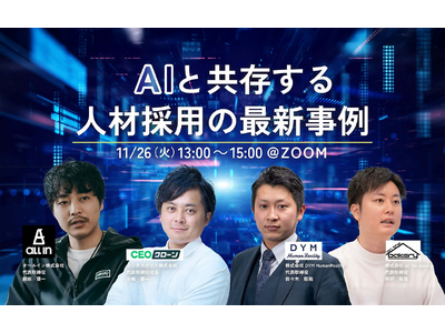 HRブランド戦略・HR戦略コンサルティングを手掛けるオールイン株式会社(本社:東京都渋谷区、代表取締役 前田優一)。AI活用が前提化する採用現場で、選ばれる企業は何を実装しているのか。オールイン前田を含む4社が、最新事例と再現性ある採用運用を語るウェビナーを11月26日に開催します。