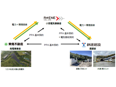 鉄建建設株式会社(本社:東京都千代田区、代表取締役社長:伊藤 泰司、以下「鉄建建設」)、東急不動産株式会社(本社:東京都渋谷区、代表取締役社長:星野 浩明、以下「東急不動産」)、株式会社リエネ(本社:東京都渋谷区、代表取締役:小島 隆司、以下 「リエネ」)は、CO2排出量の削減に向けた取り組みの一環として、オフサイト型コーポレートPPA契約(以下、「本PPA」)を締結し、独立行政法人鉄道建設・運輸施設整備支援機構発注の鉄建・アイサワ・西江・北土北海道新幹線、渡島トンネル(天狗)他特定建設工事共同企業体(以下、渡島(天狗)JV)及び鉄建・TSUCHIYA・西江・アラタ北海道新幹線、内浦トンネル(東川)特定建設工事共同企業体(以下、内浦(東川)JV)へのオフサイトPPAによる再生可能エネルギー電力(以下、 「再エネ電力」)の供給を開始したことをお知らせいたします。これにより、公共インフラ工事の脱炭素化および北海道内で生産した再エネ電力の「地産地活」の実現へ貢献してまいります。