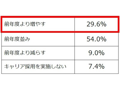 キャリア採用意欲は、依然旺盛。3割の企業がキャリア採用を「増やす」と回答。