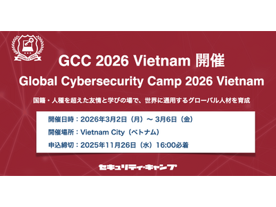 次代を担う日本発で世界に通用する若年層の情報セキュリティ人材を発掘・育成することを目指す一般社団法人セキュリティ・キャンプ協議会(以下、当協議会)は、「GCC 2026 Vietnam - Global Cybersecurity Camp 2026 Vietnam(以下、GCC 2026 Vietnam)」を、2026年3月2日(月)から3月6日(金)までの5日間(移動日を含む7日間)にわたり、ベトナムにて開催いたします。