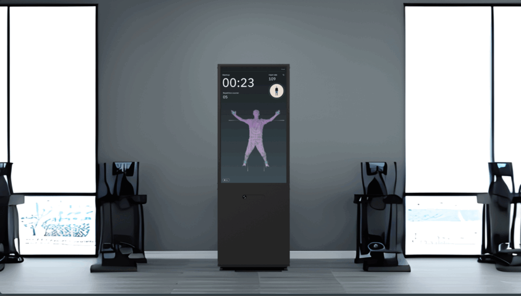 AR X LiDARを活用した‘‘デジタル体育'’ソリューション「DIDIM(ディディム)」。床面に映し出されるインタラクティブな映像を通じて、HMDやデバイスを必要とせず、身体だけで運動・ゲーム・フィットネステストなどを体験できます。「DIDIM」は、拡張現実を利用したさまざまなトレーニング空間(最小4.5m×3m程度)を映像で生成。床を利用して非接触、非対面型トレーニングを可能にします。簡単に、手ぶらで、年齢や対象、目的に合った難易度チューニングが可能。ひとりでも、複数での協力プレイ、オンラインでの対戦プレイなどもできます。ゲームを介して脳への刺激を送るだけに終わらず、同時に適度な運動を促すことで偏りない健康効果を可能とします。