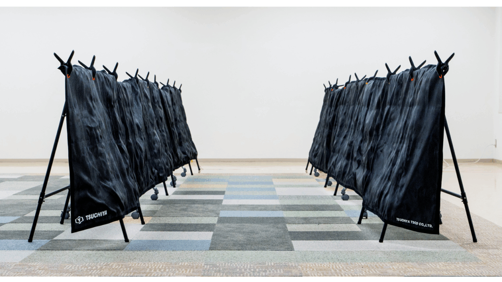 スピーカーの機能をそのままに自由に形を変えることができる、軽量・薄型のフレキシブルな静電式布状スピーカーを利用した音体験を展示します。巻物状に収納・運搬可能な柔軟性を持ち、設置性にも優れ、表層材を変更することで意匠性の高いデザイン展開が可能に。音質面では中高音域の再生性能に優れ、とりわけ女性ボーカルの再現性が高く、臨場感のある音響体験を提供します。布の全面に小さな発音体が無数にあるようなイメージで音が鳴るため、場所による音量差が少なく、音源の位置特定が困難な独特の音場空間を形成します。軽量・薄型であると同時に、数メートルから数十メートル級までの大型化も容易。会場では長さ約10mに及ぶ次世代スピーカー「NWON」による音の回廊を作り、左右から聞こえる音の間を歩くことにより、音が追随してくるような錯覚を味わえるとともに、従来にない没入型・体感型の音響演出を体験できる特別展示を行います。