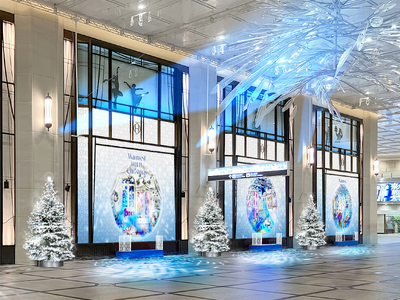 〇コンコースウィンドー7面に雪降る巨大なスノードームが登場!