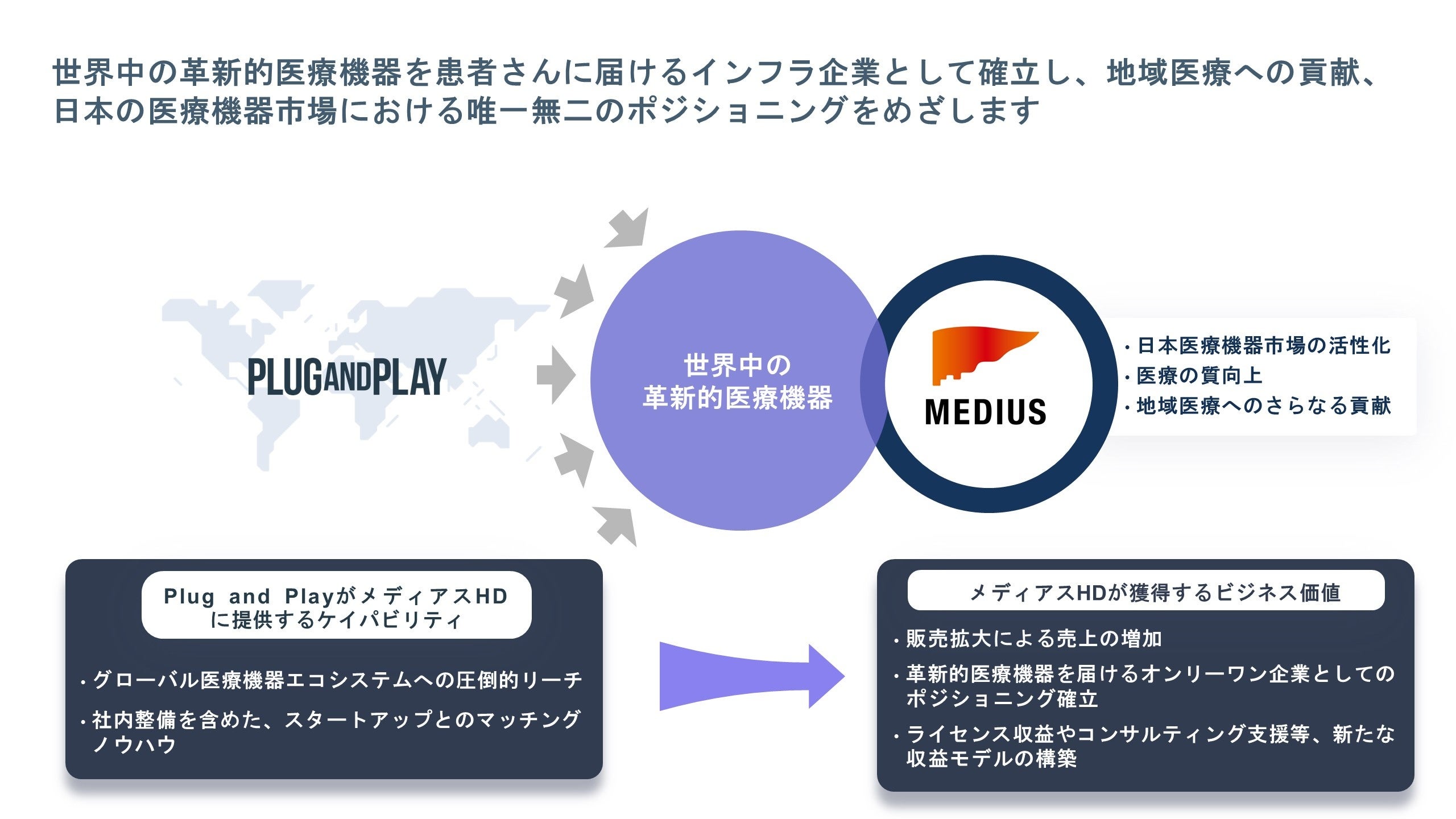 メディアスホールディングス株式会社(本社:東京都千代田区、代表取締役社長 池谷 保彦、以下メディアスHD)は、医療分野におけるDXの浸透による病院経営の最適化支援、ならびにAIや最新テクノロジーを活用した先進的な医療デバイスの円滑な市場参入を通じて地域医療への貢献を図ることを目的に、グローバルでイノベーション支援とスタートアップ投資を行うPlug and Play Japan株式会社(本社:東京都渋谷区、代表取締役社長 ヴィンセント・フィリップ、以下Plug and Play)とパートナーシップ契約を締結いたしました。