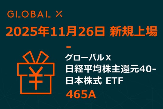 大和証券グループのGlobal X Japan株式会社(東京都千代田区、代表取締役社長:藤岡 智男、以下「当社」)は、本日、東京証券取引所より「グローバルX 日経平均株主還元40-日本株式 ETF」【465A】の上場の承認がなされたことをお知らせします。