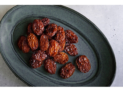 本事業を通じて、1835年創業、七代にわたりぶどう栽培を続ける内子町の「井上農園」から、新商品「ドライシャインマスカット」が誕生しました。自家栽培の高級ぶどう「シャインマスカット」を使用し、生果の香りと甘みをそのまま閉じ込めた添加物を使用していないドライフルーツとして、2025年11月6日に発売します。旬を超えて味わえる、新しい価値を提案する逸品です。