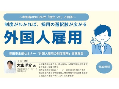 豊田市が市内事業所の人材確保と適正な雇用実現を目指し企画した本セミナーは、多くの方にご参加いただき、外国人雇用への関心の高さを改めて認識いたしました。