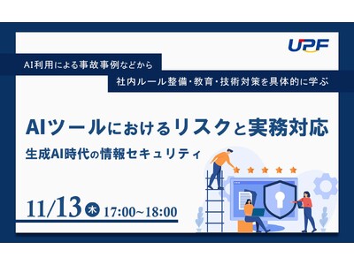 リスクマネジメント分野のコンサルティングサービスを提供する株式会社UPF(本社:東京都中央区、代表取締役:仲手川 啓、以下当社)は、2025年11月13日(木)17:00より、生成AIツールの業務利用に潜む情報セキュリティリスクと、その実務的な対応策をテーマとした無料オンラインセミナーを開催いたします。