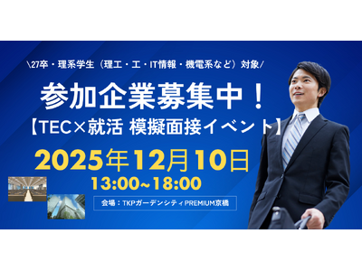 総合人材支援サービスを提供するジャパン株式会社(本社:東京都港区、代表:藤堂修)は、2025年12月10日に優秀な理系学生(2027年卒)向けの”即”面談ができる模擬面接イベントを開催します。