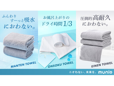 薬剤不使用でニオイ菌を抑制。清潔・速乾・高耐久を叶える、新時代のタオルブランドから機能的なタオル3種類を販売開始いたします。(https://munio.jp/)