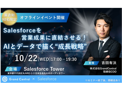 セールスコンサルティングを展開する株式会社Grand Central(本社:港区三田、代表取締役CEO:北口拓実)は、株式会社セールスフォース・ジャパンと『Salesforceを営業成果に直結させる!AIとデータで描く成長戦略』をテーマとした共催セミナーを開催いたしました。