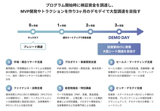 創業支援プログラム「Out of BOUNDS」は、各事業テーマに沿って仮説検証・事業計画の策定、一定の事業解像度に達した場合の出資検討や、事業テーマに関心がある投資家へのご紹介を行い、プログラム終了後の創業を目指します。