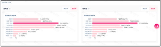 1,000円 ~ 3,000円の1商品あたりの価格帯が売れ筋ラインである点は、TikTok Shopローンチ直後の7月より変化はなし。 10月は500-1000円単価ラインの販売比率が大きく上昇(Top2)。