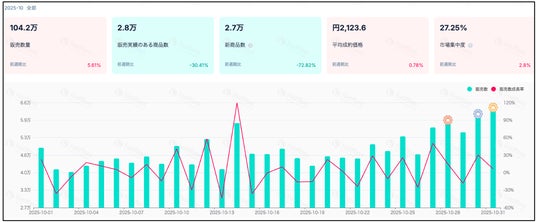 市場全体では引き続き「ビデオ(カゴ付ショートビデオ)」が販売主戦場となっているものの、10月でライブ配信数量が前月比44%と大きく増加へ。