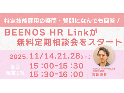 BEENOS株式会社の連結子会社で、特定技能雇用を包括支援するBEENOS HR Link株式会社(以下「BEENOS HR Link」)は、登録支援機関や受け入れ企業など、特定技能雇用に関する全ての企業・団体のお悩みにこたえる無料定期相談会をスタートしました。