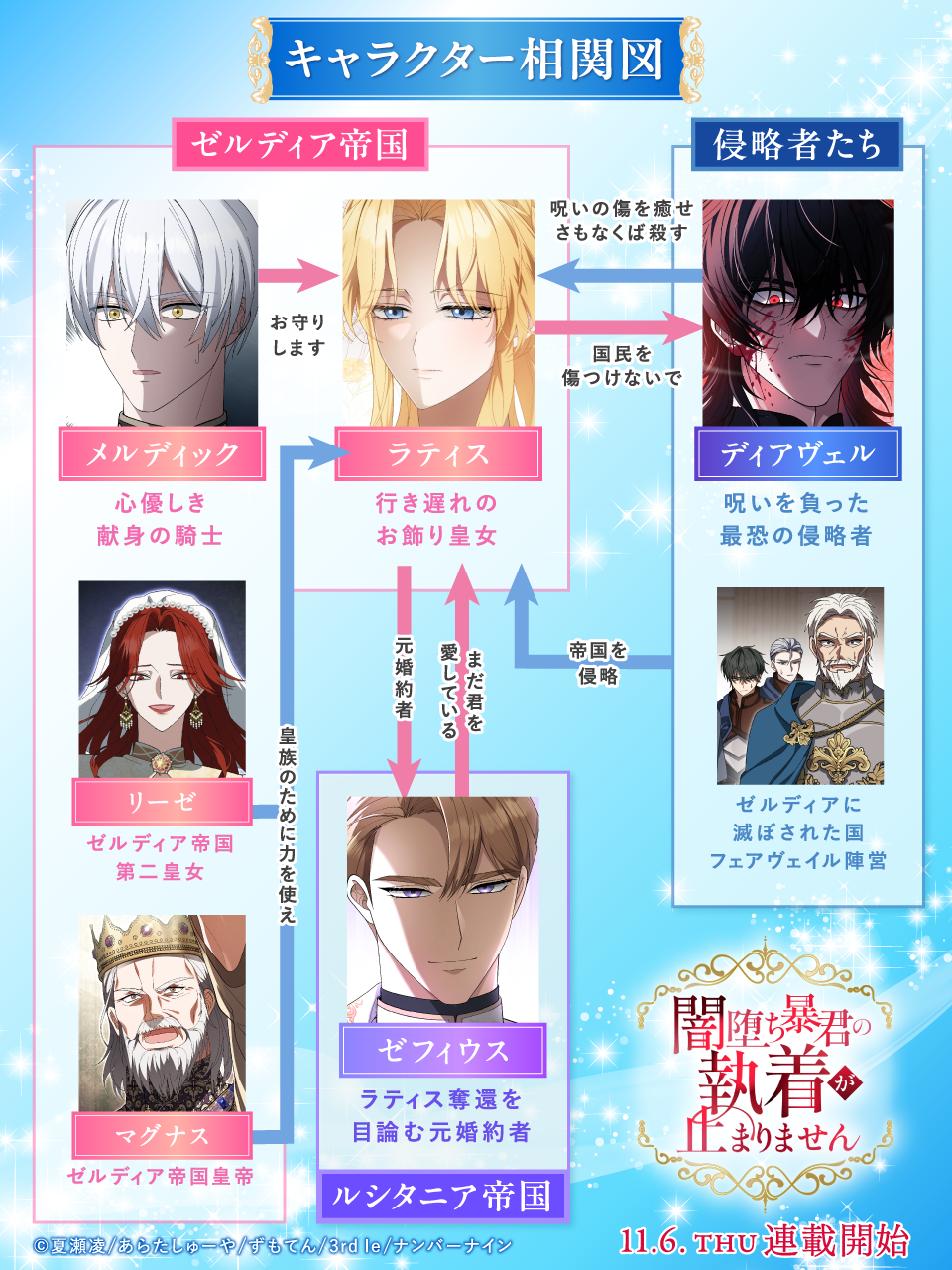 継妹に婚約者を奪われ、皇帝に力を搾取され続けた孤独な皇女。国民のため侵略者ディアヴェルに従うが、彼の深い傷に触れ救済を決意する。彼女の献身的な愛こそが、暴君の冷酷な心を動かし、強烈な執着を生むことになるとは知らずに。