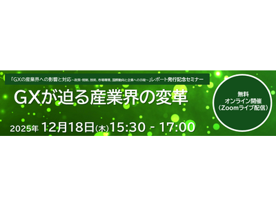 この度、本プロジェクトの成果をとりまとめたレポート「GXの産業界への影響と対応~政策・規制、技術、市場環境、国際動向と企業への示唆~」の発行を記念して(*)、Webセミナーを開催します。