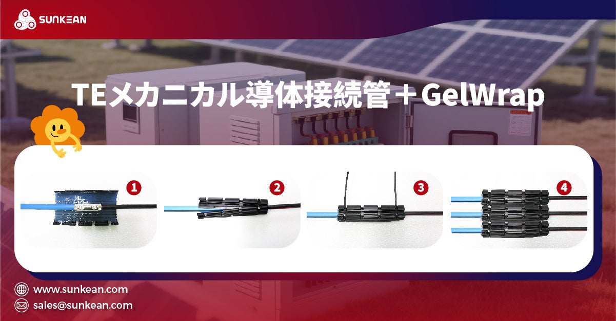 SUNKEANは、現場環境や施工条件に応じて柔軟に選択できる 「TEメカニカル導体接続管+熱収縮チューブ」 および 「TEメカニカル導体接続管+GelWrap」 の2種類のソリューションを提供しています。
