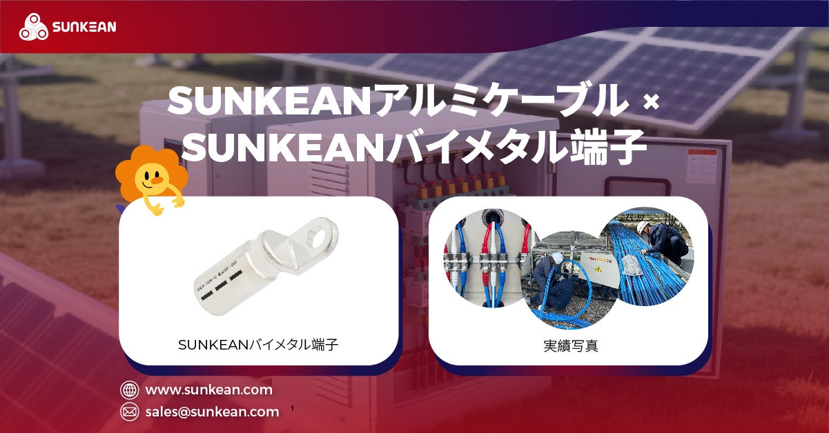 d169501-7-796117b08d3fc17616af4a8af61e0234.pdfアルミケーブルの採用は、コスト削減と盗難防止の両面から再生可能エネルギー分野における必然的な流れとなっています。SUNKEANは、ケーブル本体から端末処理、さらに銅・アルミ接続までを包括したソリューションを通じて、顧客に安全かつ効率的な選択肢を提供。今後も技術革新を進め、世界の太陽光発電・再エネ産業の発展に貢献してまいります。