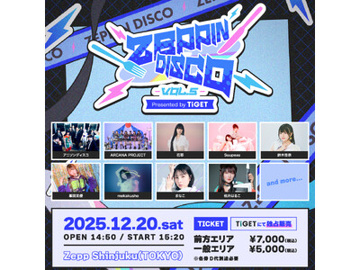 「ZEPPIN DISCO Vol.5」が2025年12月20日(土)に、東京・Zepp Shinjukuにて開催されます。チケットはイベントプラットフォーム「TIGET」にて販売中です。