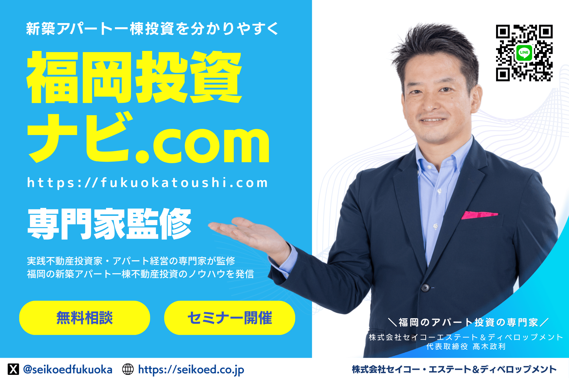 九州・福岡を拠点に新築アパート建築と不動産投資支援を行う株式会社セイコー・エステート&ディベロップメント(代表取締役:高木政利)は、2025年11月8日(土)に「