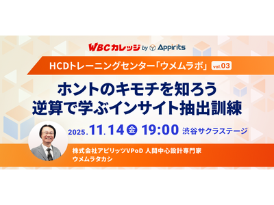 株式会社アピリッツは、ワーキンググループ「WBCカレッジ」を定期開催しており、この度その第三弾として「HCDトレーニングセンター・ウメムラボvol.03」を実施いたします。